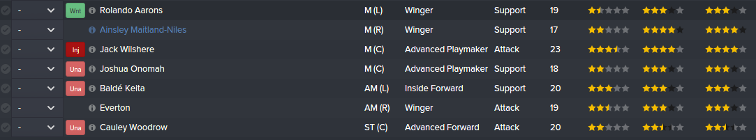Speaking of which. Loan deals. Some of these guys can go out of the door to get lots of first team minutes. Lookman, Sims, Walker-Peters, Solanke and Maitland-Niles are offered out.