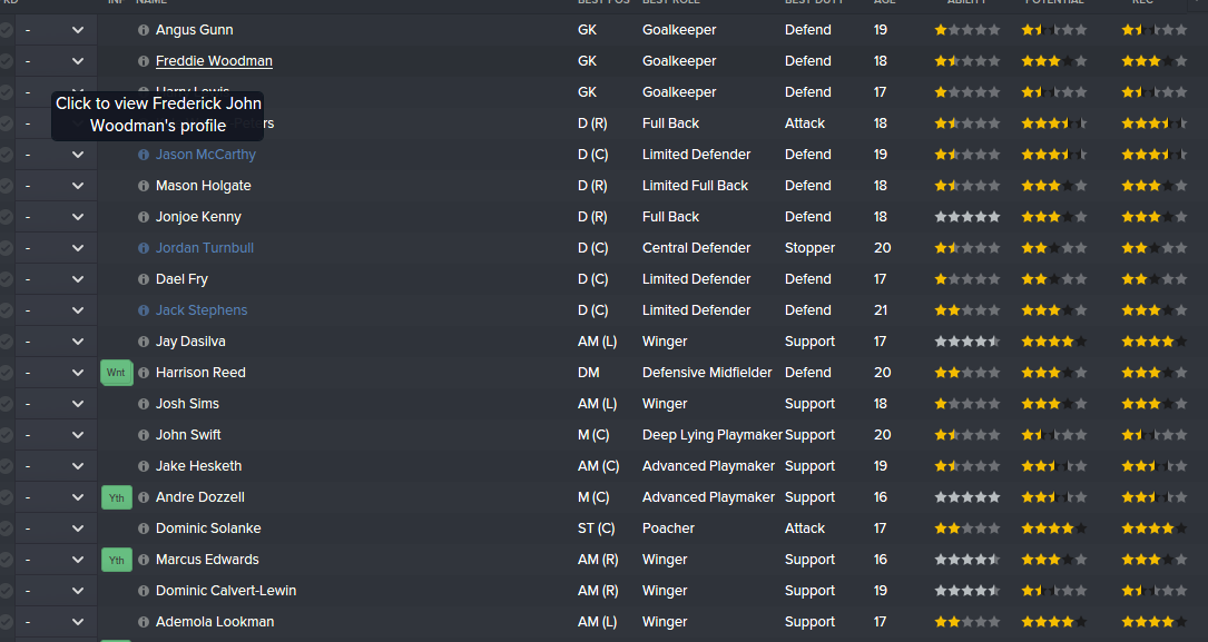 From the U20s I only chose to take one of the goalkeepers. Freddie Woodman. Some of these players have fantastic in game potential, others barely register.