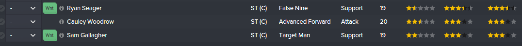 The forwards proved problematic. Edwards and Nmecha are in. Sadly FM 16 has never heard of Ben Bereton or Isaac Buckley-Ricketts.