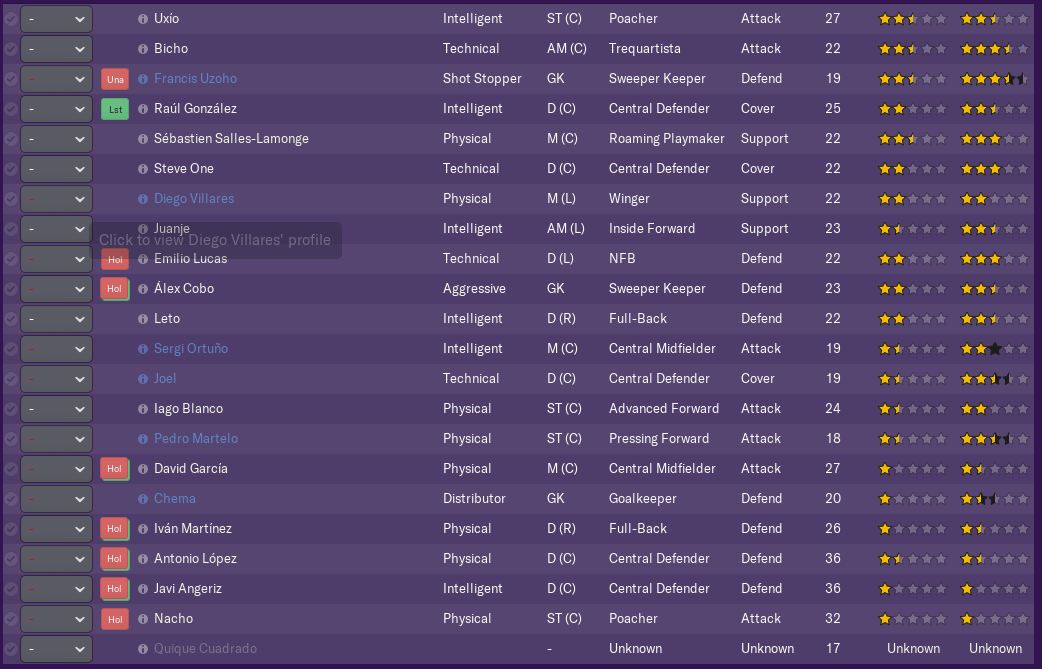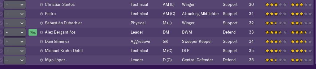 The squad has a number of very good players on loan. There are some good young players at the club while there are a few veterans around. No one is on huge wages, but the size of the squad and the average wage mean almost £200k goes out a month. This will have to be reduced. In fact, the general squad size is too big, something to take a deeper look at.