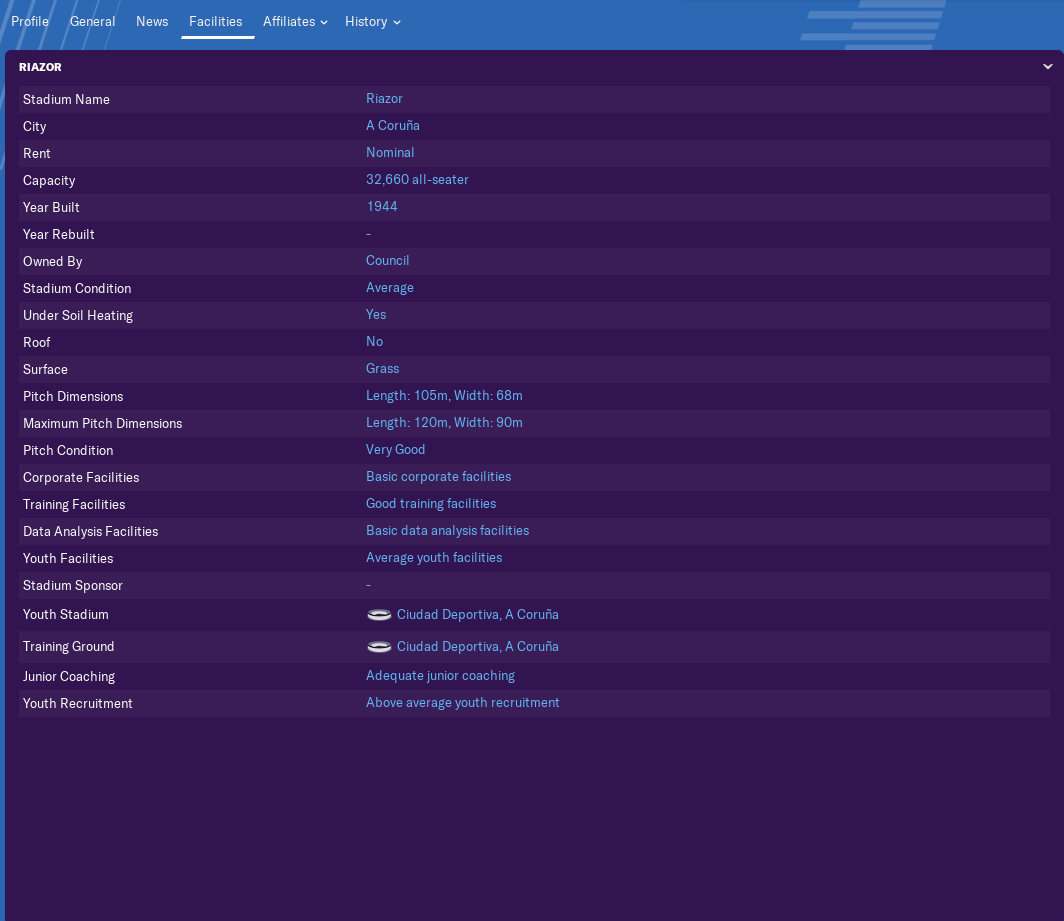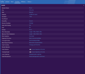 The clubs core facilities are moderate. Nothing that needs desperate action, but I doubt I will see the youth system produce many amazing players in the short term.