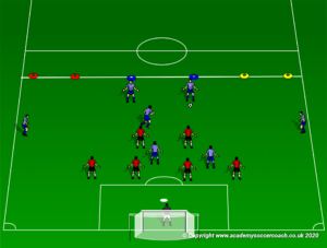 For both teams we want to retain the importance of scoring. Team Bulwark score a point by escaping out of the gate. Team Raiders score a point by scoring a goal. Whenever one of the teams does this it reduces their target by one. For Team Bulwark that equates to four minutes to survive rather than five. For Team Raiders that might reduce the task to four penalty area entries rather than five, or it might reduce it to three if the goal came via a penalty box entry.