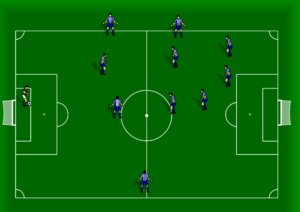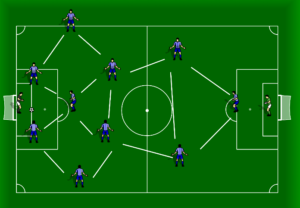 Six players form a hexagon close to the halfway line while four players create a large diamond in the attacking positions. The inverted wing backs (or full backs) can make underlapping runs while maintaining a defensive structure. Similarly, one of the central midfielders can make a forward run. The hexagon will be gone but at the minimum a square will remain.