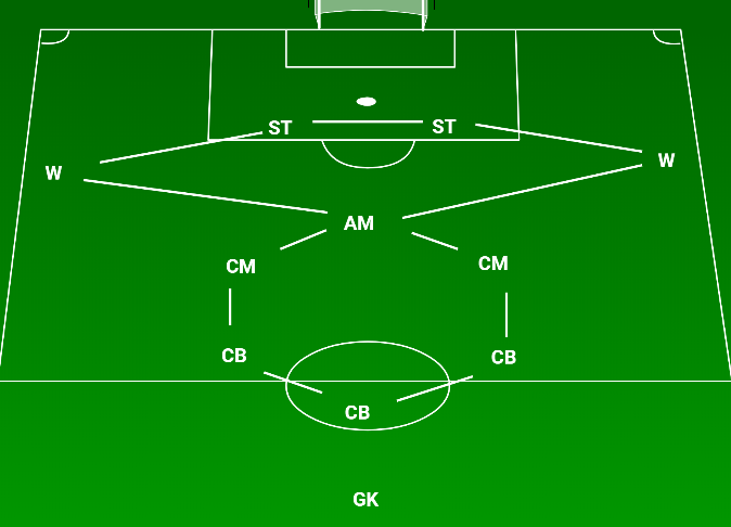 Should we choose to use 3-5-2 shape the hexagon and diamond become fully integrated. Our upper diamond is slightly flattened by the pair of strikers but the shape remains. The two central midfielders operate naturally within the half space. Should they narrow this would allow the attacking midfielder a huge amount of freedom, with little compromise in the anti counter attack structure.