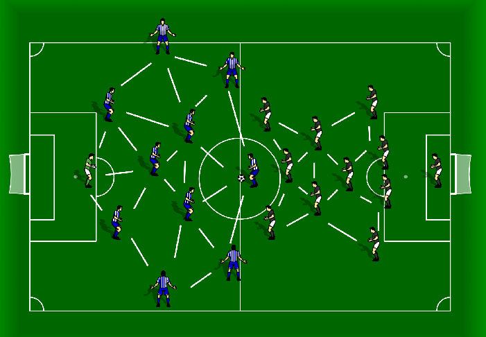 The dense honeycomb structures begin to form. These can be transferred into open play when both teams are settled into established territory.