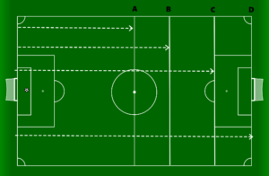 Goal kicks present their own changes to pitch geometry. The removal of the immediate impact of offside enables teams to utilise the full length of the pitch. The rules regards player positioning within the penalty area of the team taking the kick also change the geometric options available, affording players within the penalty area a certain amount of time and space. Goal kicks offer an opportunity to create structure both in and out of possession before the action starts. Whether a team is seeking to pass the ball short or play in a more direct manner.