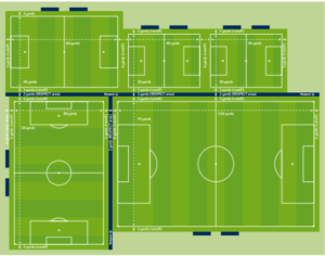 This geometry is undeniable and inevitable. It may be scaled for the younger players, or drastically adapted for practices or exercises, but this is the game (aside from an obscure form of three goal and three team football).