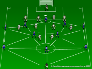 Using inverted wing backs can help close the gaps centrally and decrease their running distances when recovering (unless they have made a lengthy underlapping run). This shape also enables the inverted wing backs and inside forwards/attacking midfielders to operate in the half spaces.