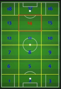 Coaches creating grids to help illustrate their ideal spacing. These grids form a further sub geometry to football, with coaches having their own formula based on their ideas. Zone 14 became a common focus.